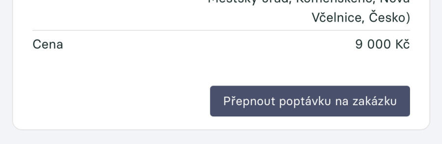 Důležité je, že v tomto kroku stále zůstáváš ve formě poptávky - on ti sice odsouhlasil cenu a třeba zaplatil zálohu, ale ještě jste si nedomluvili konkrétní termín. Ten poté stačí doplnit do poptávky a až uznáš za vhodné, tak si poptávku přepneš na zakázku.