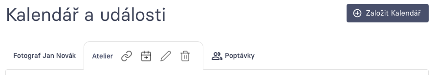 V základu od nás máš připravené dva kalendáře. Jeden z nich je hlavní, do kterého ti jdou všechny rezervace a kam si můžeš vkládat i vlastní události atp. Těchto kalendářů můžeš mít i více, stačí kliknout na Založit kalendář. Druhým kalendářem je Poptávkový kalendář, do něj ti vkládáme všechny poptávky, které přijdou - tak, aby se ti nemíchaly s hlavním kalendáře.