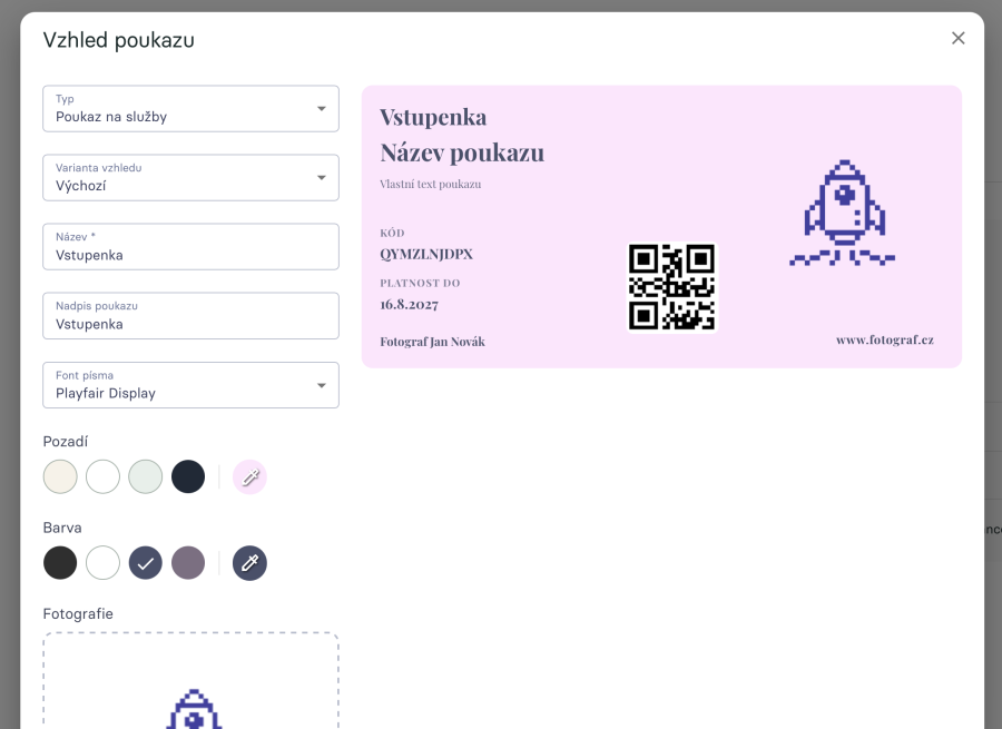 Poukaz poté můžeš dát založit a nahrát fotku a vložit tam třeba své logo v PNG